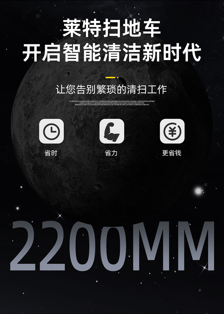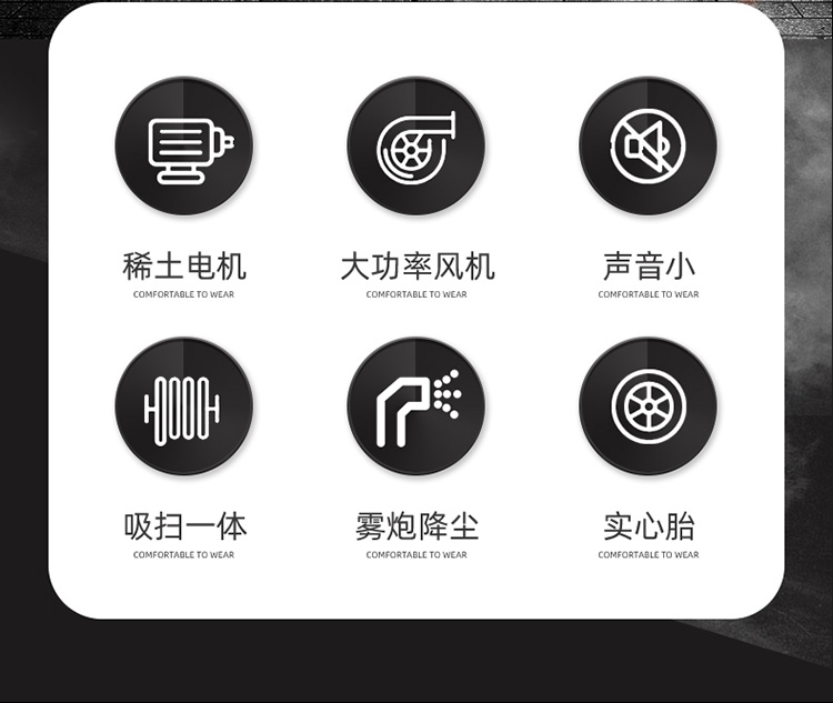 莱特LT-G22型全封闭驾驶式扫地车,配备高压清洗和高压雾炮功能,清扫宽度2200mm,满电工作时间为6-8小时,工作效率:16500㎡/h,采用的是6块150A的铅酸免维护电池。高压雾炮射程可达10米以上,可对作业环境高效的降尘,还可以用于绿植养护和环境消杀。高压水枪可以对地面顽固污渍进行清洁,还可以冲洗路牙石,为绿植浇水,工作之余,还可以用高压水枪清洗车辆。应用场景为:厂区、车间、公园、街道、物业小区、码头、学校、机场等需要大面积清扫的区域区域。