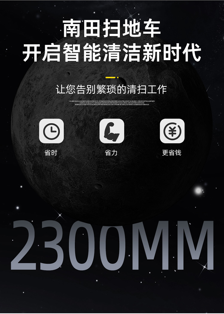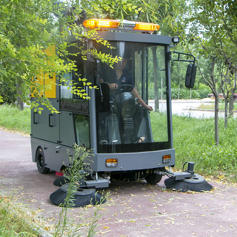 莱特LT-G23型,全封闭四轮驾驶式扫地车,配备高压清洗和高压雾炮功能,清扫宽度2300mm,满电工作时间为4-6小时,工作效率20000㎡/h,采用的是200A锂电池,高压雾炮射程可达10米以上,可对作业环境高效的降尘,还可以用于绿植养护和环境消杀。高压水枪可以对地面顽固污渍进行清洁,还可以冲洗路牙石,为绿植浇水,工作之余,还可以用高压水枪清洗车辆。应用场景为:厂区、车间、公园、街道、物业小区、码头、学校、机场等需要大面积清扫的区域区域。