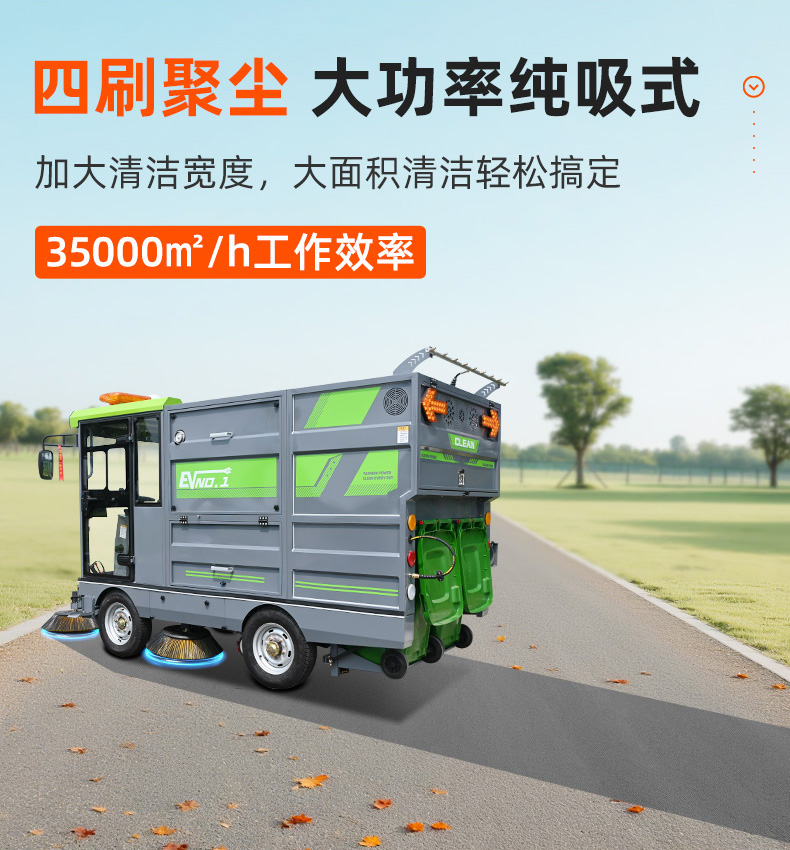 莱特LT-G90型全封闭四轮驾驶式扫地车,此车辆为纯吸款高性能车辆、无滚刷结构,使用效果更稳定。车辆具备智能语音系统,配备高压清洗和高压雾炮功能,清扫宽度2450mm,满电工作时间为3-5小时,工作效率35000㎡/h,采用的是特种车专用磷酸铁锂电池,配置长度4米可拆卸手持吸管,吸净率高,作业速度快。后置双240L标准垃圾桶,收集满灰尘垃圾之后,可以直接更换垃圾桶,效率高,无需人工倾倒垃圾。高压雾炮射程可达10米以上,可对作业环境高效的降尘,还可以用于绿植养护和环境消杀。高压水枪可以对地面顽固污渍进行清洁,还可以冲洗路牙石,为绿植浇水,工作之余,还可以用高压水枪清洗车辆。应用场景为:厂区、车间、公园、街道、物业小区、码头、学校、机场等需要大面积清扫的区域区域。