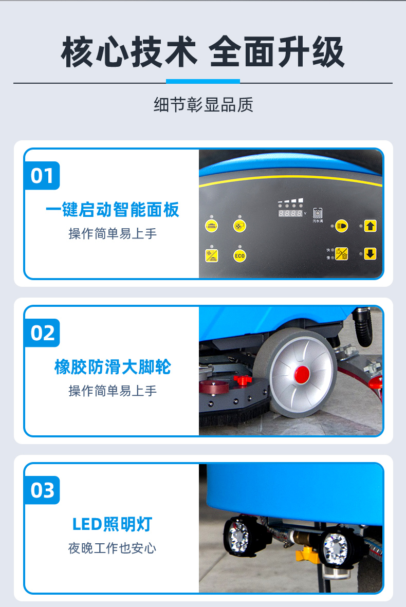 ★刷盘和吸水趴倒车自动升降,有效保护设备损伤;